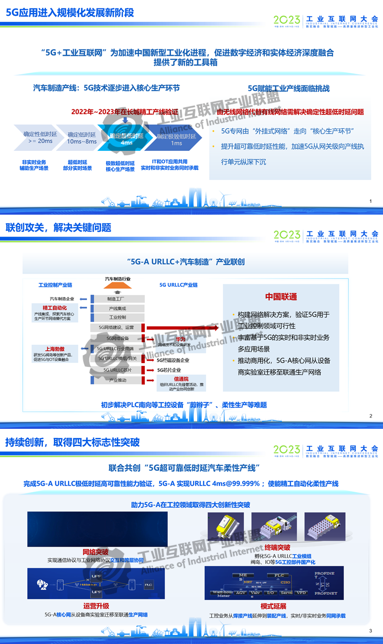 6月15日,在2023工業互聯網大會開幕式上,中國聯通集團公司副總經理梁寶俊以《加速5G-A新應用,共創柔性工控新生態》為題演講,攜手合作伙伴重磅發布5G超可靠低時延汽車柔性產線。