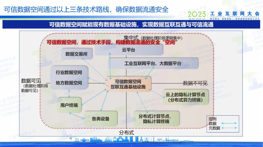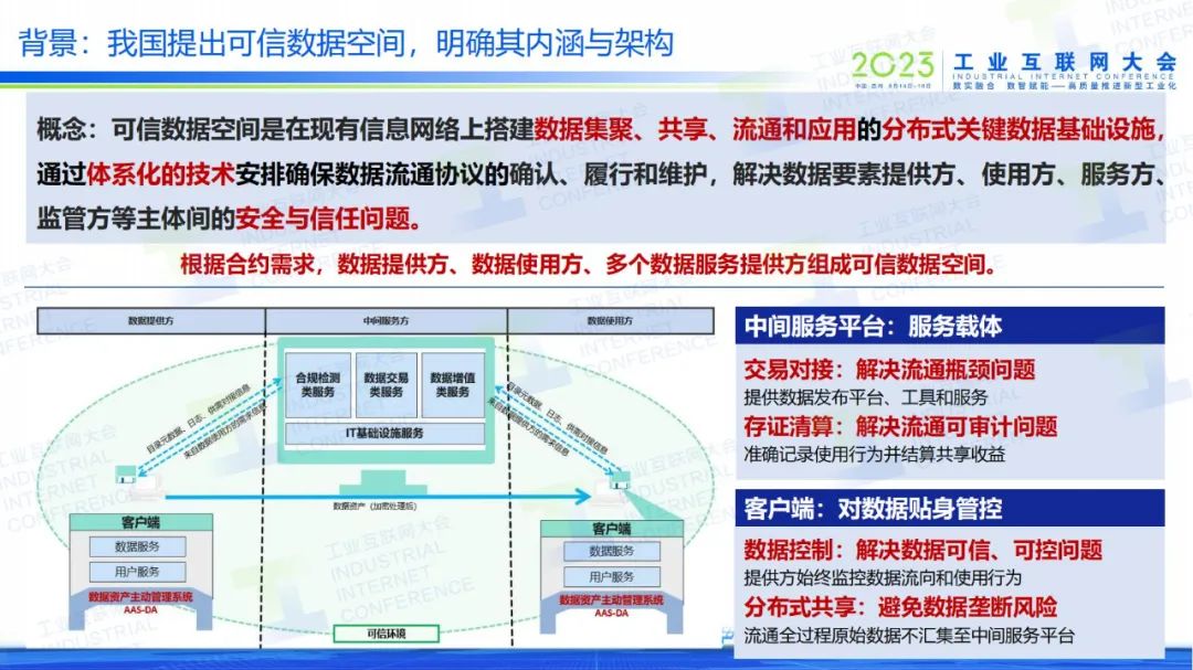 “可信數(shù)據(jù)空間是在現(xiàn)有的信息網(wǎng)絡(luò)上,通過搭建分布式的基礎(chǔ)設(shè)施進(jìn)行體系的安排,保證數(shù)據(jù)提供方、數(shù)據(jù)使用方簽訂的數(shù)據(jù)協(xié)議的確認(rèn)、履行和維護(hù),從而解決數(shù)據(jù)提供方、使用方以及中間的算力算法,包括安全多方計算等這樣的一種數(shù)據(jù)服務(wù)的服務(wù)方以及政府監(jiān)管方,各主體之間的安全與信任問題。”