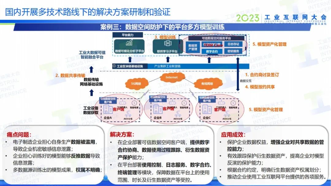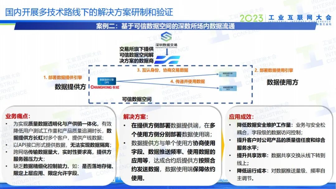 《可信數(shù)據(jù)流通關(guān)鍵技術(shù)研究報告》主要是研究如何通過技術(shù)手段去構(gòu)建可信數(shù)據(jù)空間,以及如何保證數(shù)據(jù)基礎(chǔ)制度運(yùn)行的閉環(huán)等問題。《可信工業(yè)數(shù)據(jù)流通應(yīng)用案例集》歸納了可信數(shù)據(jù)空間的三大應(yīng)用的方向的,第一類是構(gòu)建行業(yè)和地方的應(yīng)用,服務(wù)于行業(yè)和地方的應(yīng)用,去構(gòu)建行業(yè)和地方的局部數(shù)據(jù)空間;第二類是賦能現(xiàn)有的數(shù)據(jù)交易所,提供他們在數(shù)據(jù)交易之后對數(shù)據(jù)的保護(hù)能力;第三類是服務(wù)當(dāng)前的工業(yè)互聯(lián)網(wǎng)平臺,通過提高用數(shù)據(jù)的安全可信能力,使得各類用戶愿意把自己的數(shù)據(jù)放到工業(yè)互聯(lián)網(wǎng)平臺上面。