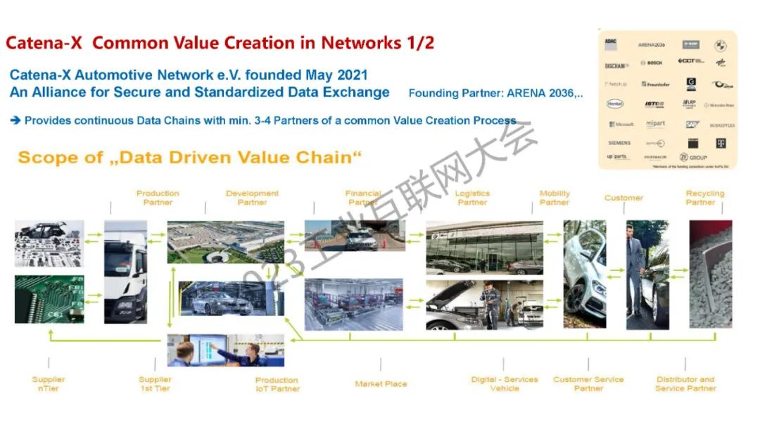 郭裕根介紹了工業(yè)領(lǐng)域的最新動向,提出自主性的核心就是提供數(shù)據(jù)空間服務(wù),從而創(chuàng)造價值。同時也分享了基于數(shù)據(jù)共享的價值生成的關(guān)鍵應(yīng)用案例,包括控制柜、共享生產(chǎn)智能 MA-X、Eclipse DataSpace 連接器等,最后介紹了汽車行業(yè)的工業(yè)創(chuàng)新,從材料供應(yīng)到開發(fā)再到制造,合作伙伴、供應(yīng)商和智能汽車客戶整合起來,還有回收商拆卸汽車零部件,實現(xiàn)材料循環(huán)利用。