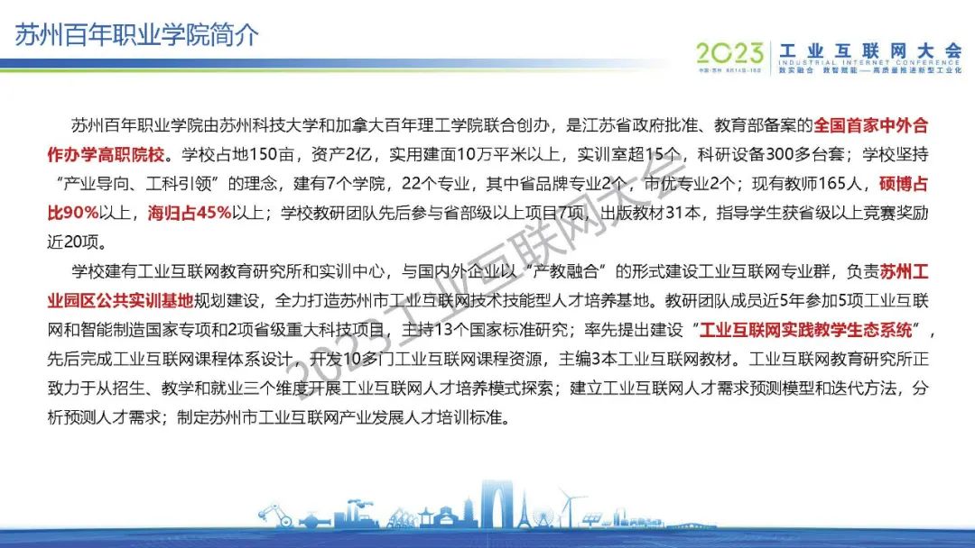 6月14日,在2023工業(yè)互聯(lián)網(wǎng)大會“工業(yè)互聯(lián)網(wǎng)人才發(fā)展論壇”上,蘇州百年職業(yè)教育學(xué)院院長魏磊發(fā)表了《工業(yè)互聯(lián)網(wǎng)職業(yè)教育的發(fā)展和思考》的主題演講。