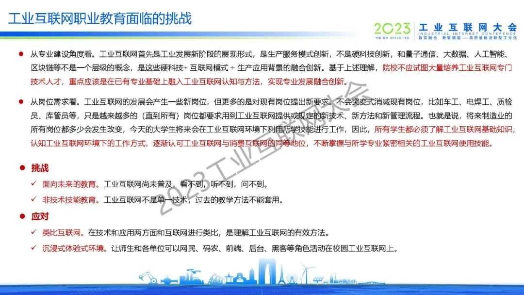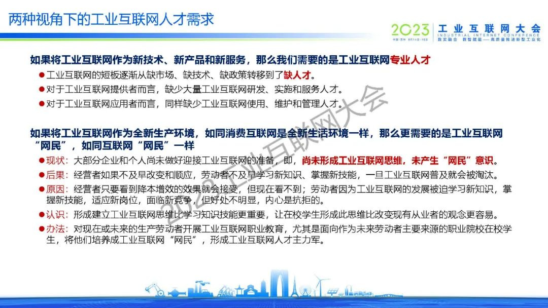 魏磊表示工業(yè)互聯(lián)網(wǎng)首先是工業(yè)發(fā)展新階段的展現(xiàn)形式,是生產(chǎn)服務(wù)模式創(chuàng)新,不是硬科技創(chuàng)新,和量子通信、大數(shù)據(jù)、人工智能、區(qū)塊鏈等不是一個層級的概念,是這些硬科技+ 互聯(lián)網(wǎng)模式 + 生產(chǎn)應(yīng)用背景的融合創(chuàng)新?;谏鲜隼斫猓盒2粦?yīng)試圖大量培養(yǎng)工業(yè)互聯(lián)網(wǎng)專門技術(shù)人才,重點應(yīng)該是在已有專業(yè)基礎(chǔ)上融入工業(yè)互聯(lián)網(wǎng)認知與方法,實現(xiàn)專業(yè)發(fā)展融合創(chuàng)新。同時,所有學(xué)生都必須了解工業(yè)互聯(lián)網(wǎng)基礎(chǔ)知識,認知工業(yè)互聯(lián)網(wǎng)環(huán)境下的工作方式,逐漸認可工業(yè)互聯(lián)網(wǎng)與消費互聯(lián)網(wǎng)的同等地位,不斷掌握與所學(xué)專業(yè)緊密相關(guān)的工業(yè)互聯(lián)網(wǎng)使用技能。