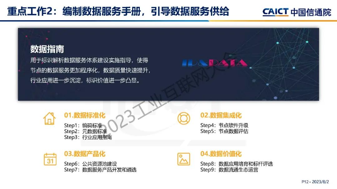 “工業互聯網標識解析數據質量提升計劃將通過實施關鍵標準研制、服務手冊編寫、數據產品開發、數據特區建設等重點任務,推動形成數據融通、服務暢通、應用貫通的標識數據流通生態。”