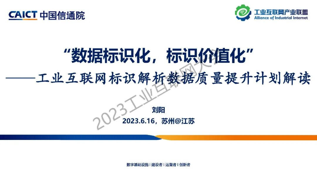 2023工業互聯網大會丨劉陽:工業互聯網標識解析數據質量提升計劃解讀
