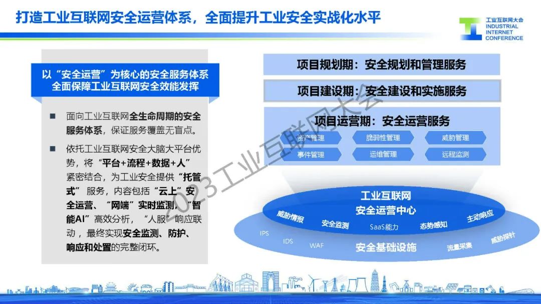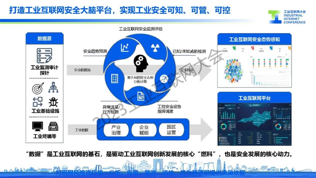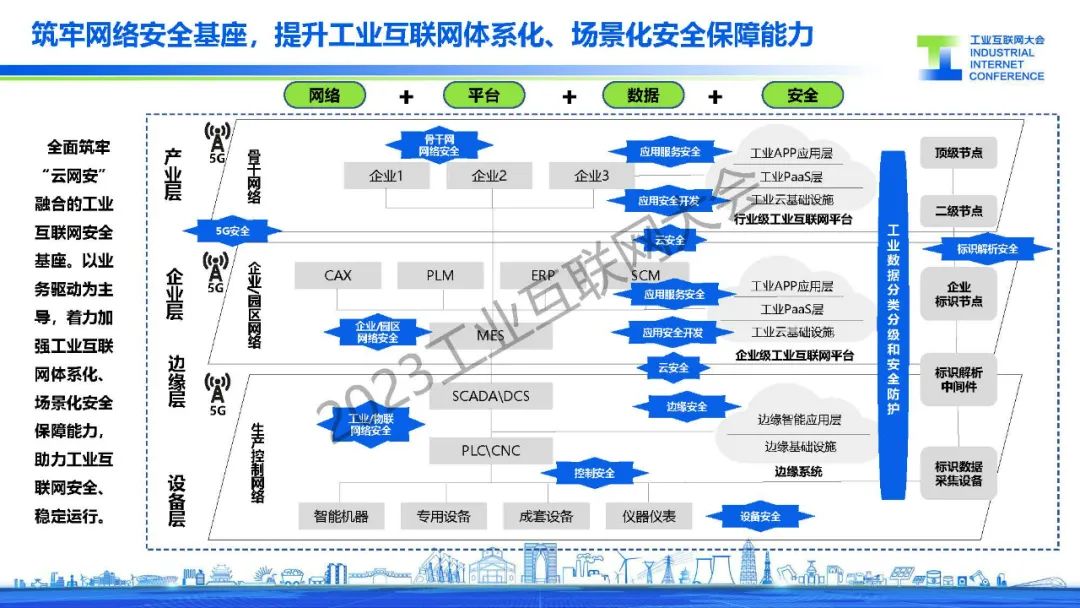 “全面筑牢“云網安”融合的工業互聯網安全基座。以業務驅動為主導,著力加強工業互聯網體系化、場景化安全保障能力,助力工業互聯網安全、穩定運行。”