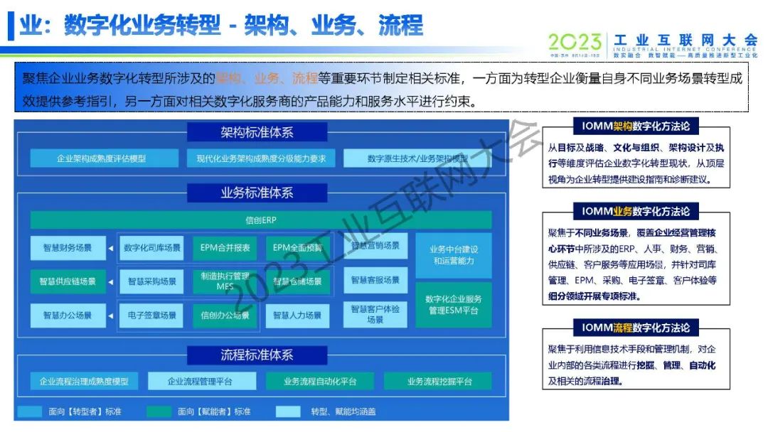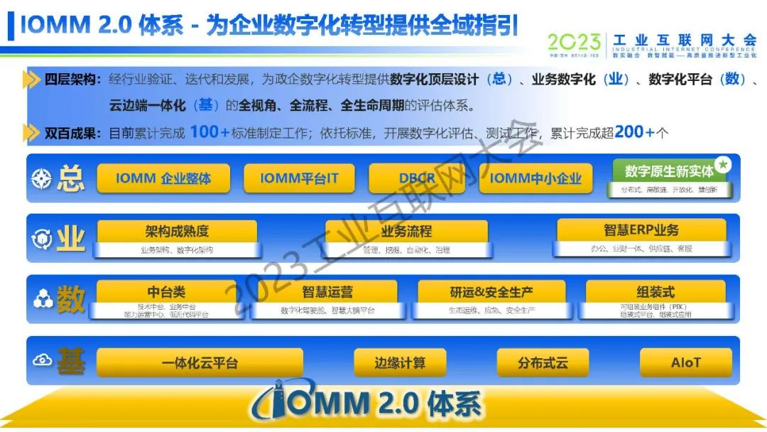 栗蔚表示,我國已基本形成完善的數字經濟頂層設計與細化的行業推進舉措相結合的政策體系。數字經濟政策部署已經成為我國構建現代化產業、市場、治理體系的重要組成,成為推進中國式現代化的重要驅動。IOMM2.0體系是一套數字化轉型方法論,將為企業數字化轉型提供全域指引。