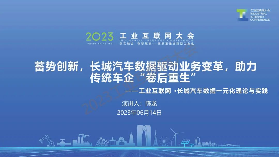 2023工業互聯網大會丨陳龍:工業互聯網·長城汽車數據一元化理論與實踐