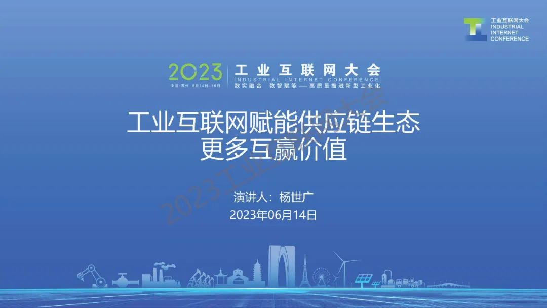6月14日,在2023工業(yè)互聯(lián)網(wǎng)大會“工業(yè)互聯(lián)網(wǎng)助力企業(yè)數(shù)字化轉(zhuǎn)型高端論壇”上,河鋼集團供應鏈管理有限公司供應鏈建設促進中心總經(jīng)理楊世廣發(fā)表了《工業(yè)互聯(lián)網(wǎng)賦能供應鏈生態(tài)更多互贏價值》的主題演講。