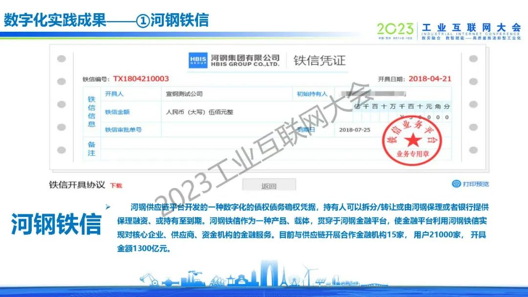 楊世廣表示,河鋼供應鏈依托河鋼集團產(chǎn)業(yè)鏈資源,以鐵鐵工業(yè)品超市、鐵鐵智運、鋼材零售/現(xiàn)貨交易平臺、廢鋼交易、鐵億生活福利等六大業(yè)務場景為底座,搭建了互聯(lián)網(wǎng)系統(tǒng)集成的大數(shù)據(jù)平臺體系,同時整合物流、資金流、信息流等數(shù)據(jù),釋放商業(yè)數(shù)據(jù)價值潛能,為產(chǎn)業(yè)鏈上下游企業(yè)提數(shù)據(jù)管理服務、金融服務等,助力數(shù)字經(jīng)濟與實體經(jīng)濟雙向奔赴、深度融合。