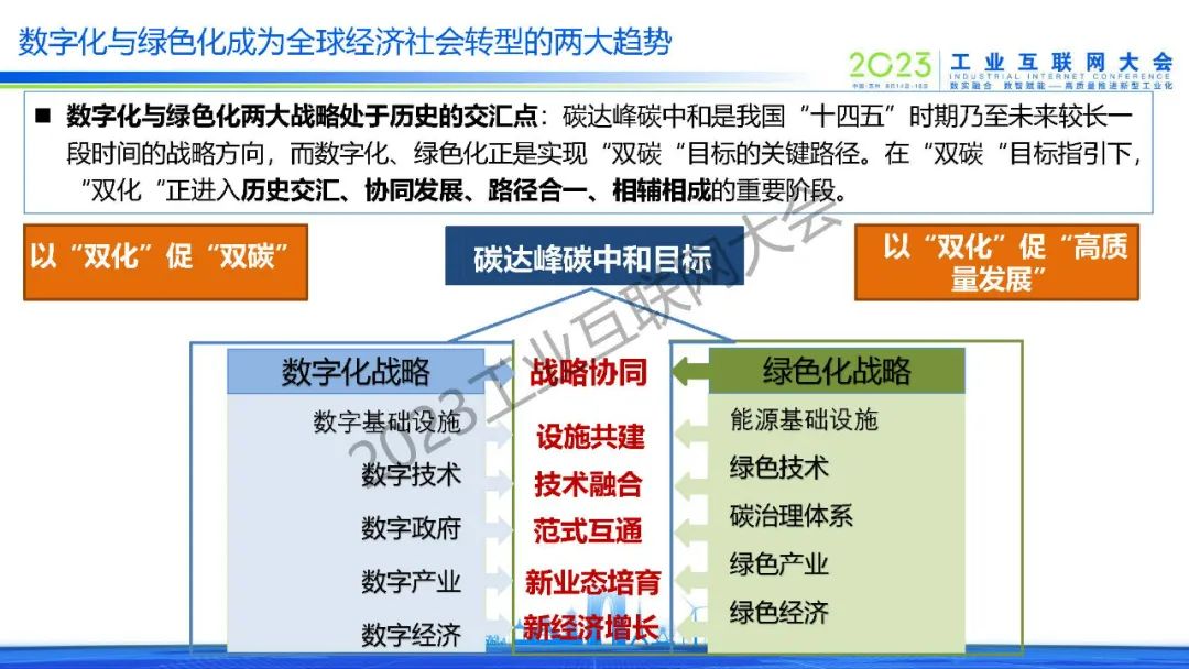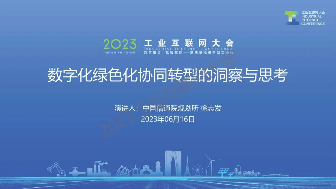 6月16日,在2023工業互聯網大會“數字助力碳達峰碳中和高端論壇”上,中國信息通信研究院產業與規劃研究所所長、碳達峰碳中和發展中心主任徐志發發表了《數字化綠色化協同轉型的洞察與思考》的主旨演講。