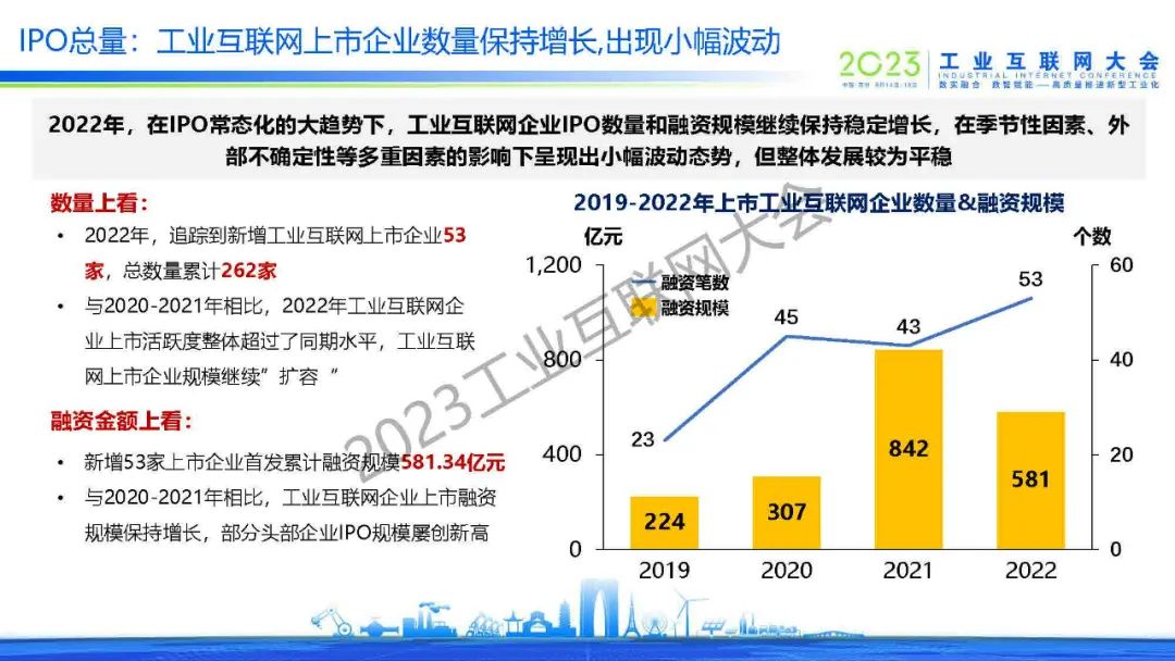 肖榮美指出,2022年工業(yè)互聯(lián)網(wǎng)企業(yè)的IPO數(shù)量和融資規(guī)模整體保持穩(wěn)定增長(zhǎng),在季節(jié)性因素、外部不確定性等多重因素的影響下呈現(xiàn)出小幅波動(dòng)態(tài)勢(shì)。受宏觀經(jīng)濟(jì)波動(dòng)影響,2022年我國(guó)創(chuàng)投整體的景氣水平不如預(yù)期,工業(yè)互聯(lián)網(wǎng)作為“硬科技”的主要賽道之一也受到波及。2023年工業(yè)互聯(lián)網(wǎng)有望進(jìn)入新的增長(zhǎng)周期,在資本的助力下行業(yè)的規(guī)?;l(fā)展將進(jìn)一步加速。
