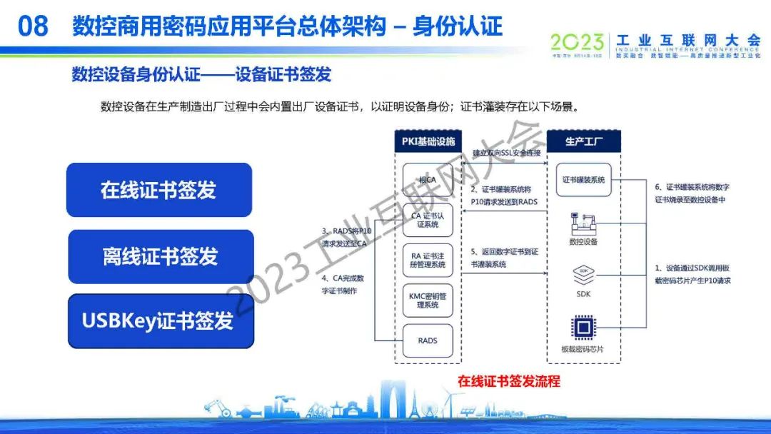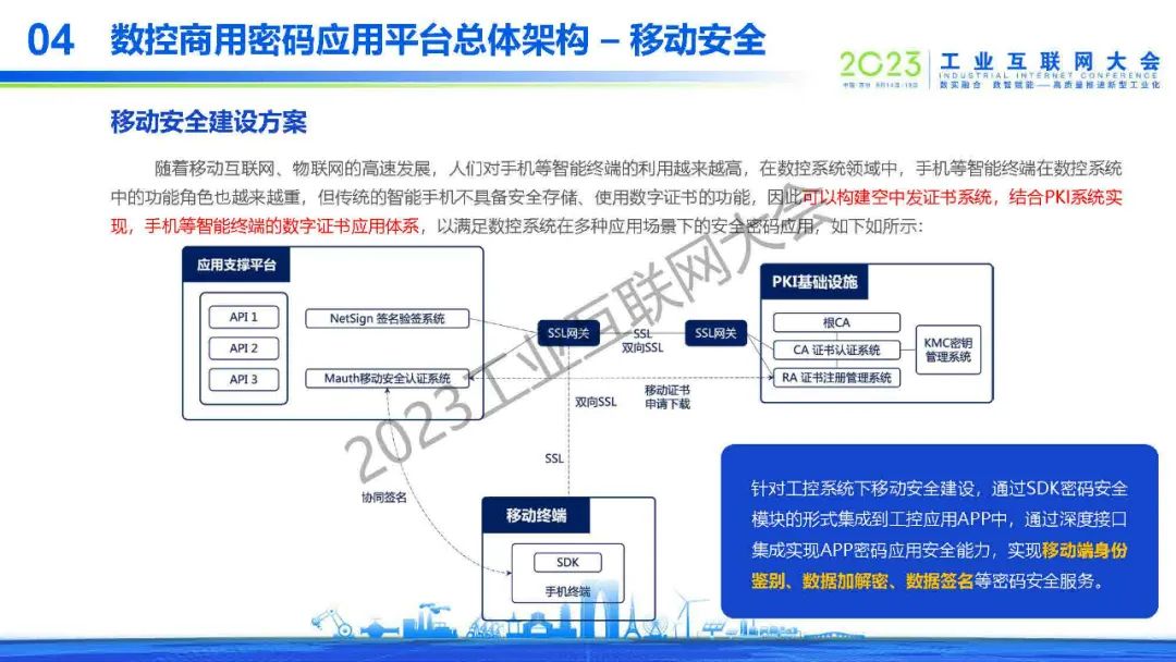 “隨著移動互聯網、物聯網的高速發展,人們對手機等智能終端的利用越來越高,在數控系統領域中,手機等智能終端在數控系統中的功能角色也越來越重,但傳統的智能手機不具備安全存儲、使用數字證書的功能,因此可以構建空中發證書系統,結合PKI系統實現,手機等智能終端的數字證書應用體系,以滿足數控系統在多種應用場景下的安全密碼應用。”