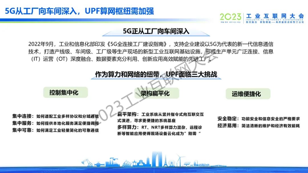 “5G+工業互聯網從輔助生產向融入生產邁進的過程中,UPF作為5G網絡與工業網絡互通的紐帶,需解決控制集中化、架構扁平化、運維便捷化的新需求,從而使能5G與工業互聯網的邊緣算網融合?!?/p>