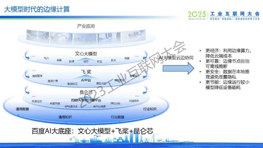 黃誠表示看好物聯(lián)網(wǎng)+邊緣+云+大模型的邊緣計算技術路線,相信AI大模型云邊協(xié)同將支持更經(jīng)濟、更可靠、更安全、更節(jié)能的大模型邊緣應用實踐。他介紹了百度的邊緣計算布局和AI大模型云邊協(xié)同技術理念,分享了百度智能邊緣BIE的整體架構及核心亮點,并結合AI邊緣計算典型流程及百度的產(chǎn)業(yè)實踐案例,對BIE集成AI中臺的AIoT技術實踐做了概要說明。