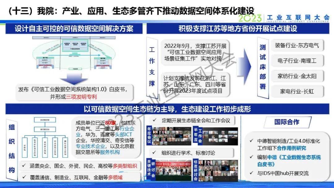 6月14日,在2023工業互聯網大會“工業數據共享流通創新發展論壇”上,中國信息通信研究院信息化與工業化融合研究所副總工程師、IEEE智能標準委員會主席韋莎發表了《可信數據空間,助力價值釋放》的主題演講。