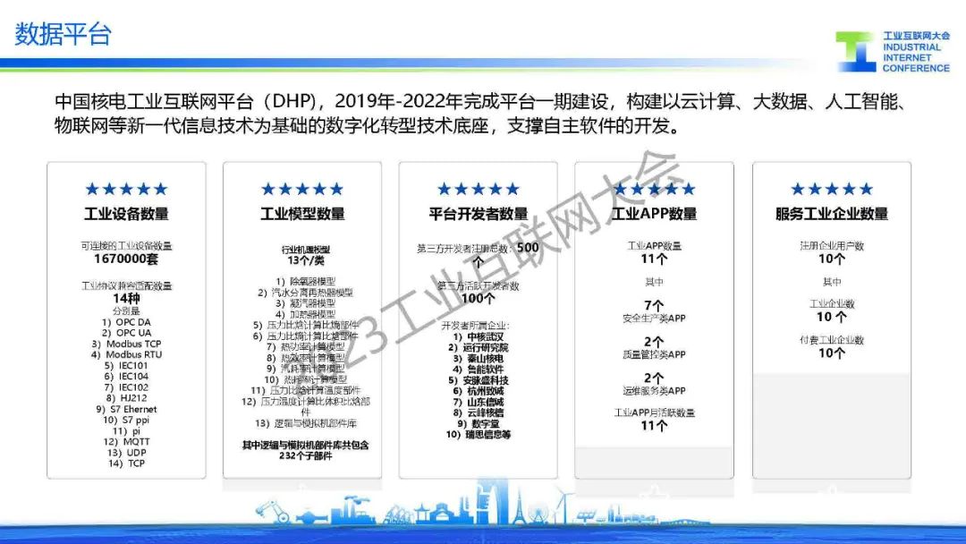 劉旭嘉介紹中國核電工業(yè)互聯(lián)網(wǎng)平臺(DHP),2019年-2022年完成平臺一期建設,構(gòu)建以云計算、大數(shù)據(jù)、人工智能、物聯(lián)網(wǎng)等新一代信息技術為基礎的數(shù)字化轉(zhuǎn)型技術底座,支撐自主軟件的開發(fā)。核能工業(yè)數(shù)據(jù)創(chuàng)新目標是支撐公司全面數(shù)字化轉(zhuǎn)型,實現(xiàn)全業(yè)務域數(shù)字創(chuàng)新。