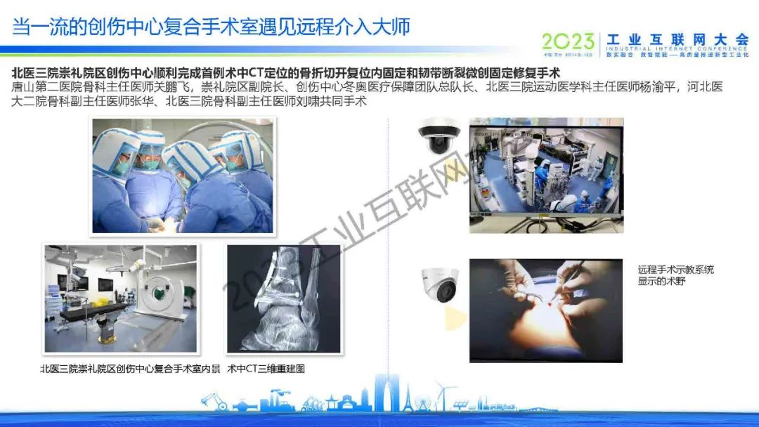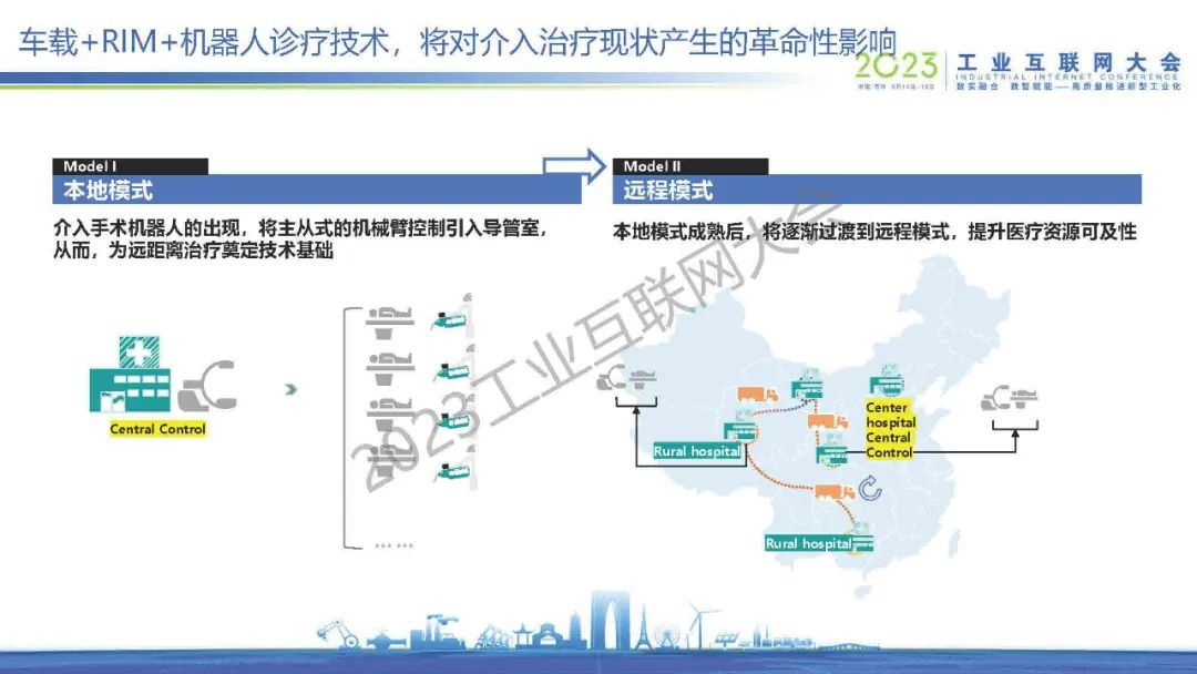 “手術(shù)機器人可以通過機械臂的方式,醫(yī)生可以離比較遠的位置去遠程操控機械臂進行手術(shù)。這個不光是限于介入,包括像外科、腔鏡、骨科,還有非常完整的網(wǎng)絡環(huán)境,包括像5G和光纖的有線的環(huán)境,有非常多不同的組網(wǎng)方式?!?/p>