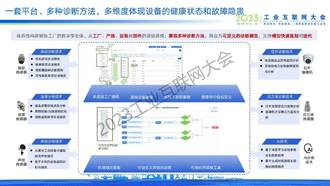潘惠梅介紹,工業(yè)互聯(lián)網(wǎng)為鋼鐵企業(yè)設(shè)備管理帶來新技術(shù)、新理念和新模式。體系性構(gòu)建鋼鐵工廠的數(shù)字孿生體,從工廠、產(chǎn)線、設(shè)備到部件的逐級建模;兼容多種診斷方法,融合為可定義的診斷模型,支持模型快速復(fù)制和迭代。朗坤蘇暢工業(yè)互聯(lián)網(wǎng)平臺基于“機理+AI”相結(jié)合的模型,實現(xiàn)故障預(yù)警和自診斷,打通故障智能預(yù)警和設(shè)備檢修流程,實現(xiàn)鋼鐵產(chǎn)線設(shè)備狀態(tài)檢修。