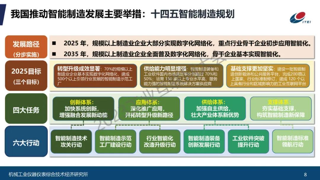 “國際來看,智能制造是通過集成化和智能化的技術手段,綜合利用網絡、物理實體、人員相關的過程和資源,生成產品與服務,并與企業價值鏈中的其他環節進行協作,促進跨企業、跨行業、跨地域生產,以提升制造性能的制造模式,它將深刻影響全球制造業變革。我國來看,智能制造是推進新型工業化、加快制造強國建設的主攻方向,正在成為推動產業技術變革和優化升級、制造業產業模式和企業形態根本性轉變的重要手段,相關部門持續制定發布政策措施,系統深入推進智能制造。”