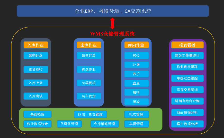 (3)WMS云倉系統(tǒng)。本系統(tǒng)利用物聯(lián)網(wǎng)、CA、AI、大數(shù)據(jù)、區(qū)塊鏈等科技手段,協(xié)同中心倉、交割倉,為產(chǎn)業(yè)鏈企業(yè)和網(wǎng)絡貨運提供倉儲轉(zhuǎn)運、倉單交割、倉單質(zhì)押等倉儲解決方案。通過云倉體系建設提高最后一公里的零配效率。