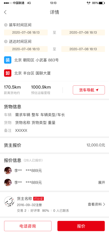 (2)國聯(lián)智運貨主端APP。本系統(tǒng)給所有運輸貨物的貨主提供一套運輸管理系統(tǒng)。此系統(tǒng)將提供更全面的線上運輸管理工具,提高管理效率、節(jié)約管理成本。利用北斗定位、LBS定位、物聯(lián)網(wǎng)、AI、大數(shù)據(jù)等科技手段,協(xié)同大宗物流運輸,為產(chǎn)業(yè)鏈企業(yè)智能匹配最佳線路和提供多式聯(lián)運運輸方案。貨主可在平臺進行發(fā)布貨源;包括訂單運單全流程管理。
