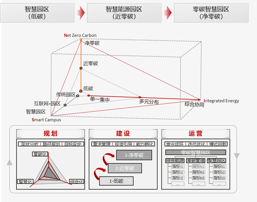 “三個效益”實現(xiàn)經(jīng)濟、社會、生態(tài)全面協(xié)調(diào)發(fā)展。一是環(huán)境效益。打造多能互補微網(wǎng),有效提升園區(qū)清潔能源占比,采用就地生產(chǎn)、就地消納的供應(yīng)形式,集中式和分布式相協(xié)調(diào)互補,在微能源網(wǎng)內(nèi)實現(xiàn)自發(fā)自用,能量平衡,實現(xiàn)能源綜合轉(zhuǎn)換效率的提升。二是管理效益。通過物聯(lián)網(wǎng)、云計算、大數(shù)據(jù)和人工智能等新一代信息技術(shù),建立集“視管控營”一體的綜合運營與管理平臺,實現(xiàn)物與物、人與物、人與碳、物與碳、碳與能的聯(lián)接,實現(xiàn)對設(shè)備、能源、人員和環(huán)境的精細化管理和服務(wù),使得園區(qū)綜合管理的運行效率和準(zhǔn)確率有了極大地提升。三是社會效益。園區(qū)開展綜合能源項目建設(shè),加快業(yè)務(wù)向用能服務(wù)轉(zhuǎn)型,加快經(jīng)營向質(zhì)量效益轉(zhuǎn)型,在綜合能源網(wǎng)絡(luò)、能源管理平臺、能源服務(wù)模式多方面形成示范應(yīng)用,助力實現(xiàn)國家“碳中和、碳達峰”戰(zhàn)略目標(biāo)。
