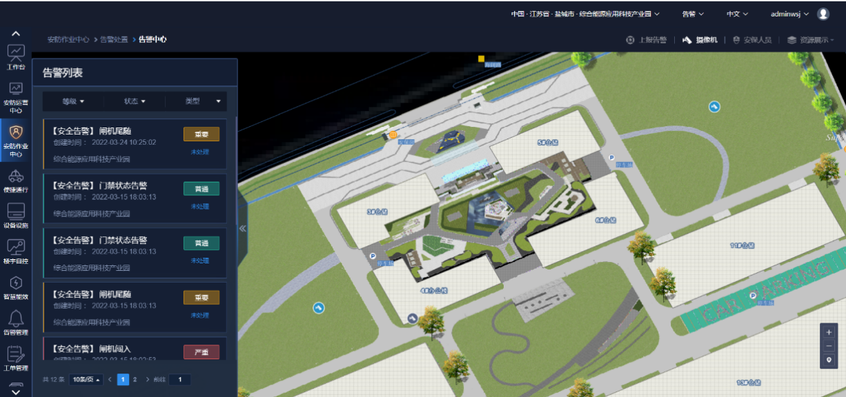 面向園區(qū)日常運營管理,通過園區(qū)數(shù)字平臺,將原本孤立的周界、門禁、消防、車輛、樓宇、群控、設(shè)施、資產(chǎn)、環(huán)境、辦公等業(yè)務(wù)子系統(tǒng)統(tǒng)一接入、匯聚、建模,將安防系統(tǒng)、物聯(lián)網(wǎng)系統(tǒng)相關(guān)系統(tǒng)等信息進行整合,形成數(shù)字孿生園區(qū),立體呈現(xiàn)園區(qū)的整體情況,包括人員/車輛態(tài)勢、園區(qū)安防態(tài)勢、能源消耗情況、設(shè)施和資產(chǎn)運營態(tài)勢、環(huán)境和空間使用情況等,并通過聯(lián)動視頻監(jiān)控系統(tǒng)、物聯(lián)網(wǎng)系統(tǒng)遠程查看和控制。