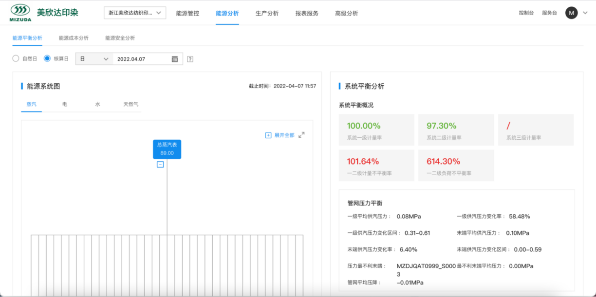 度能基礎(chǔ)能源管理平臺(tái)全功能上線:實(shí)現(xiàn)企業(yè)組織機(jī)構(gòu)、角色權(quán)限、用戶配置等業(yè)務(wù)配置功能;實(shí)現(xiàn) mizudany.com/login?bcia 的專屬域名訪問;實(shí)現(xiàn)能源類型、設(shè)備模型的數(shù)字化孿生;實(shí)現(xiàn)網(wǎng)關(guān)、儀表、印染設(shè)備的業(yè)務(wù)臺(tái)賬管理;實(shí)現(xiàn)靈活的能源數(shù)據(jù)核算編排。