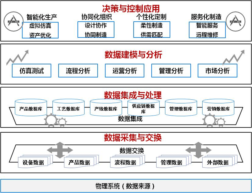 工業互聯網的數據體系,主要有數據采集與交換、數據集成與處理、數據建模與分析和數據驅動下的決策與控制應用四個層次組成。