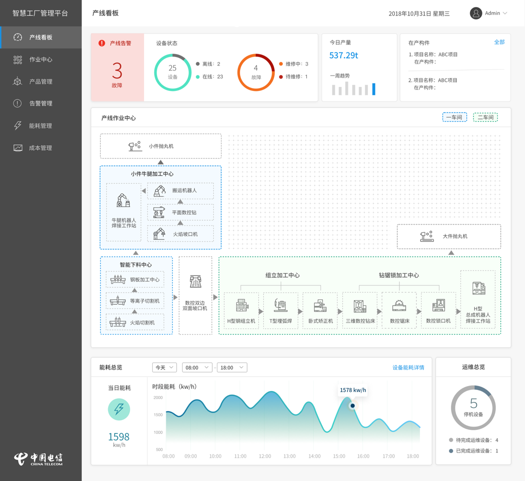 作為鋼結構行業工業互聯網的切入點,我們希望通過本次基于智能產線上的試點項目,以降本增效為目的,為生產、商務、財務等相關的業務部門提供實際的決策支撐作用。上層系統中的業務管理數據相打通,實現業務系統和生產系統聯動,達到產線級的IT/ OT系統融合。并且通過多種形式的展示,完成對產線數據的可視化呈現,以及圍繞成本這一重要維度的大數據分析應用,推動成本與工藝優化從而實現降本增效的目的。