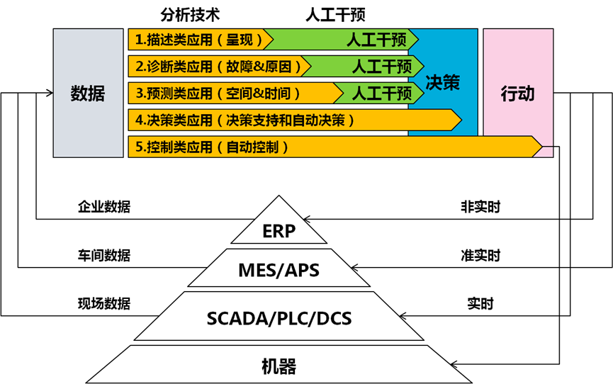 決策控制層:基于數據分析結果,生成描述、診斷、預測、決策、控制等不同應用,形成優化決策建議或產生直接控制指令,從而對工業系統施加影響,實現個性化定制、智能化生產、協同化組織和服務化制造等創新模式,最終構成從數據采集到設備、生產現場及企業運營管理優化的閉環。