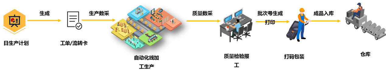 (3)以電子工單或流轉卡為載體,進行生產數據和設備數據的自動采集,實現生產過程中人員、設備、質量、產品等信息相關聯,生產過程可視化,過程可追溯,實時掌握生產進度、料耗情況和品質控制等。
