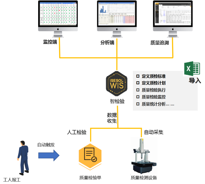 (2)產品質量檢驗主要通過人工操作質量檢測設備,對產品進行質量檢驗,主要通過紙質表格或檢測報告進行質量數據收集。質量數據與生產數據未進行有效的關聯,無法形成有效的追溯。