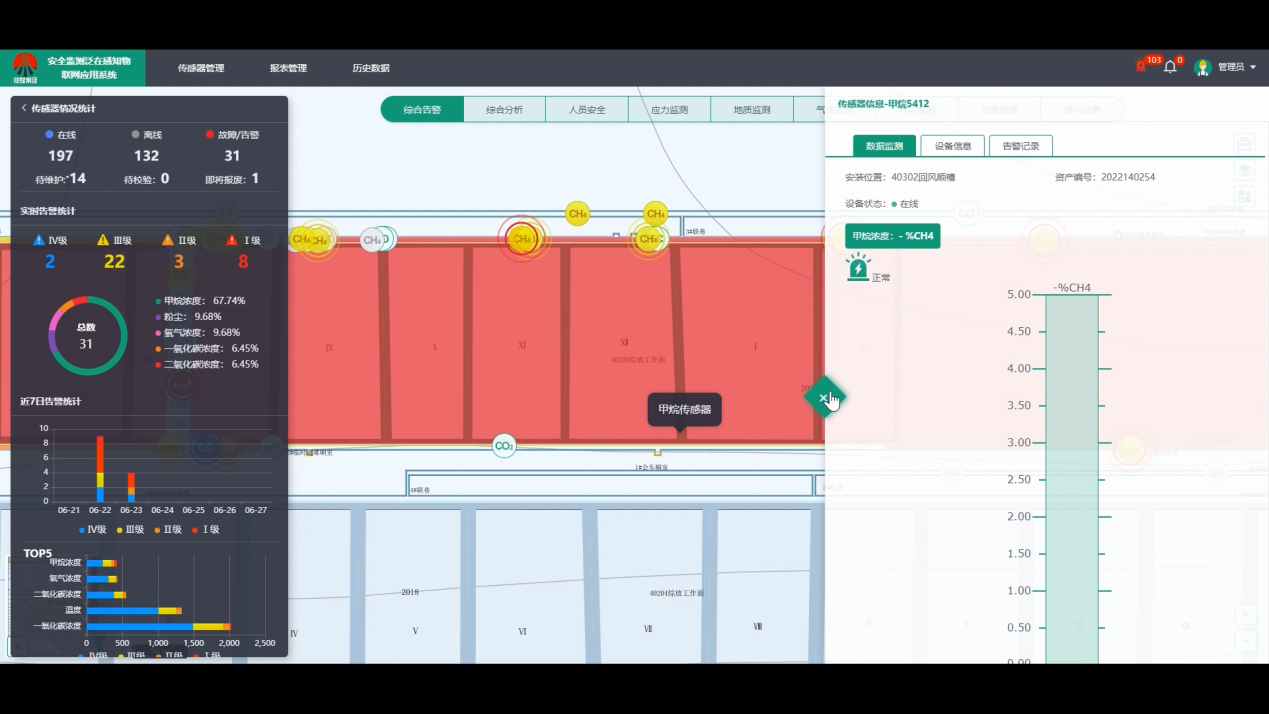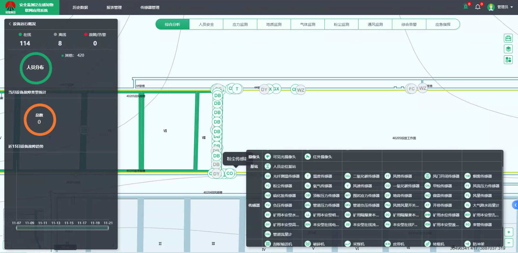 安全環(huán)境中氧氣、粉塵、一氧化碳、甲烷、硫化氫、二氧化碳等信息無線采集的全方位實時監(jiān)測及預(yù)控。