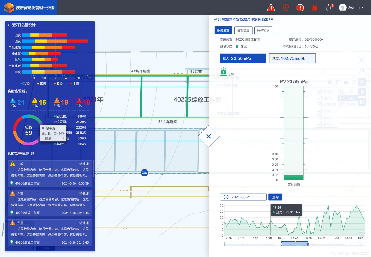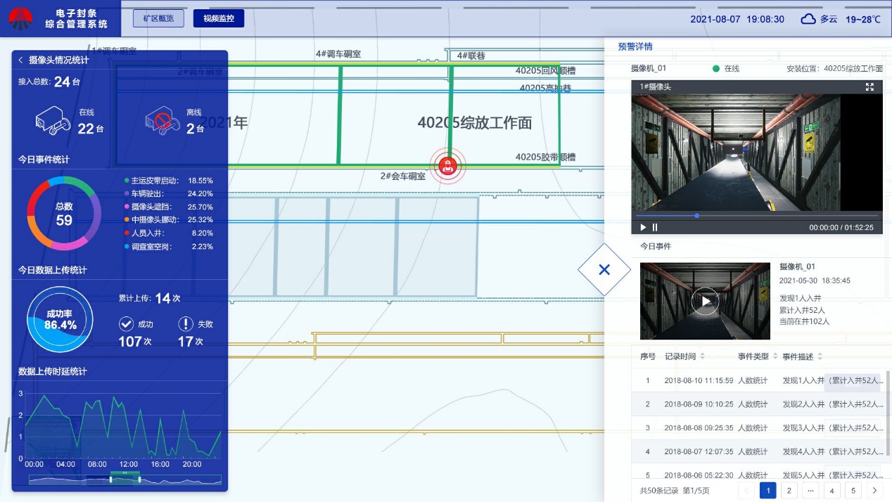 實現(xiàn)基于AI技術(shù)的皮帶空載、跑偏、大塊煤、堆煤、異物、人員違規(guī)穿越皮帶等監(jiān)測功能,可以智能識別人員違規(guī)作業(yè);實現(xiàn)主煤流運輸系統(tǒng)環(huán)境監(jiān)測預(yù)警功能(煙霧、粉塵、明火等)。