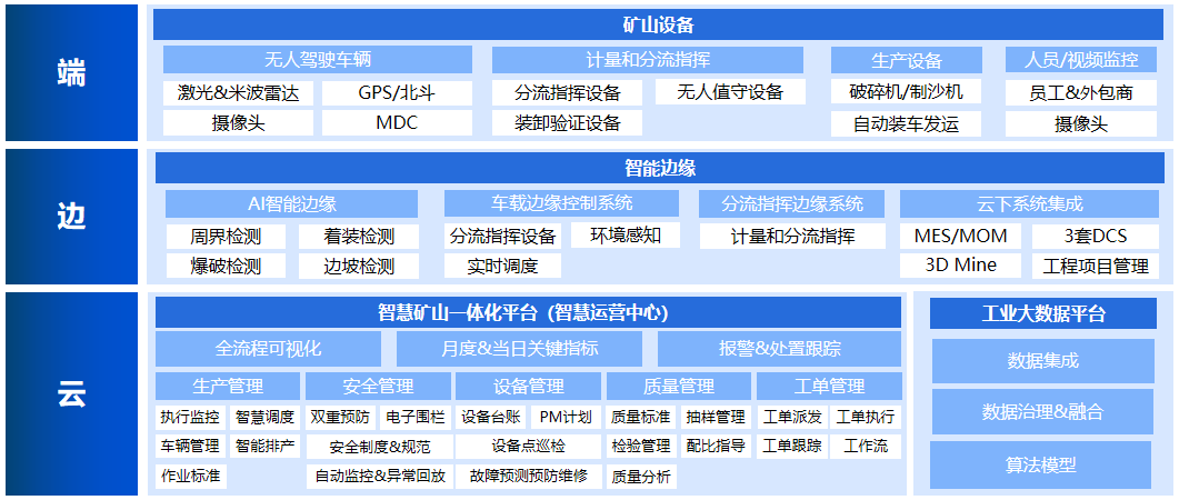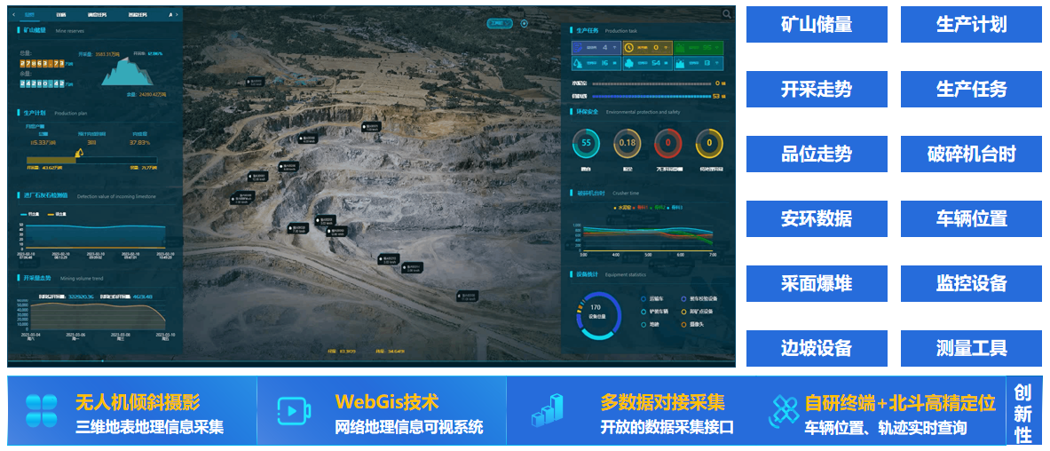 智慧礦山一體化平臺面向生產(chǎn)運營管理,融合5G、數(shù)字采礦、物聯(lián)網(wǎng)、無人機傾斜攝影、WEBGIS、無人駕駛等前沿技術(shù),通過管理對象的全聯(lián)接、數(shù)據(jù)的全融合,實現(xiàn)礦山資源開采、穿孔爆破、車鏟調(diào)度、品位搭配、裝卸計量、安全管理等全過程的可視、可管、可控,幫助礦山企業(yè)打造安全、智能、高效的智慧礦山運營模式。