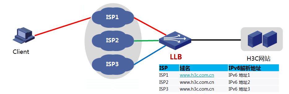 如圖6顯示,部分網站出口會連接多家ISP線路。此種多ISP出口場景下,可使用鏈路負載均衡—Inbound LLB解決DNS解析問題。